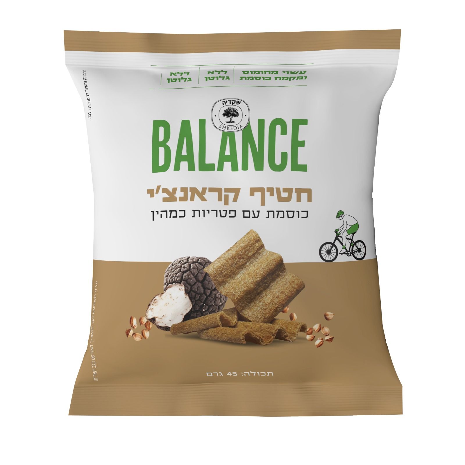 רכיבים: קמח כוסמת {59.1%}, שמן חמניות, קמח חומוס, קמח עדשים אדומות, תערובת תבלינים עם פטריות, כמהין 4.8%, {עמילן תפוח אדמה, מלח, אבקת בצל, אבקת פטריות, כמהין 4.5%, חומרי טעם וריח, תבלינים, סיבי תפוח אדמה}