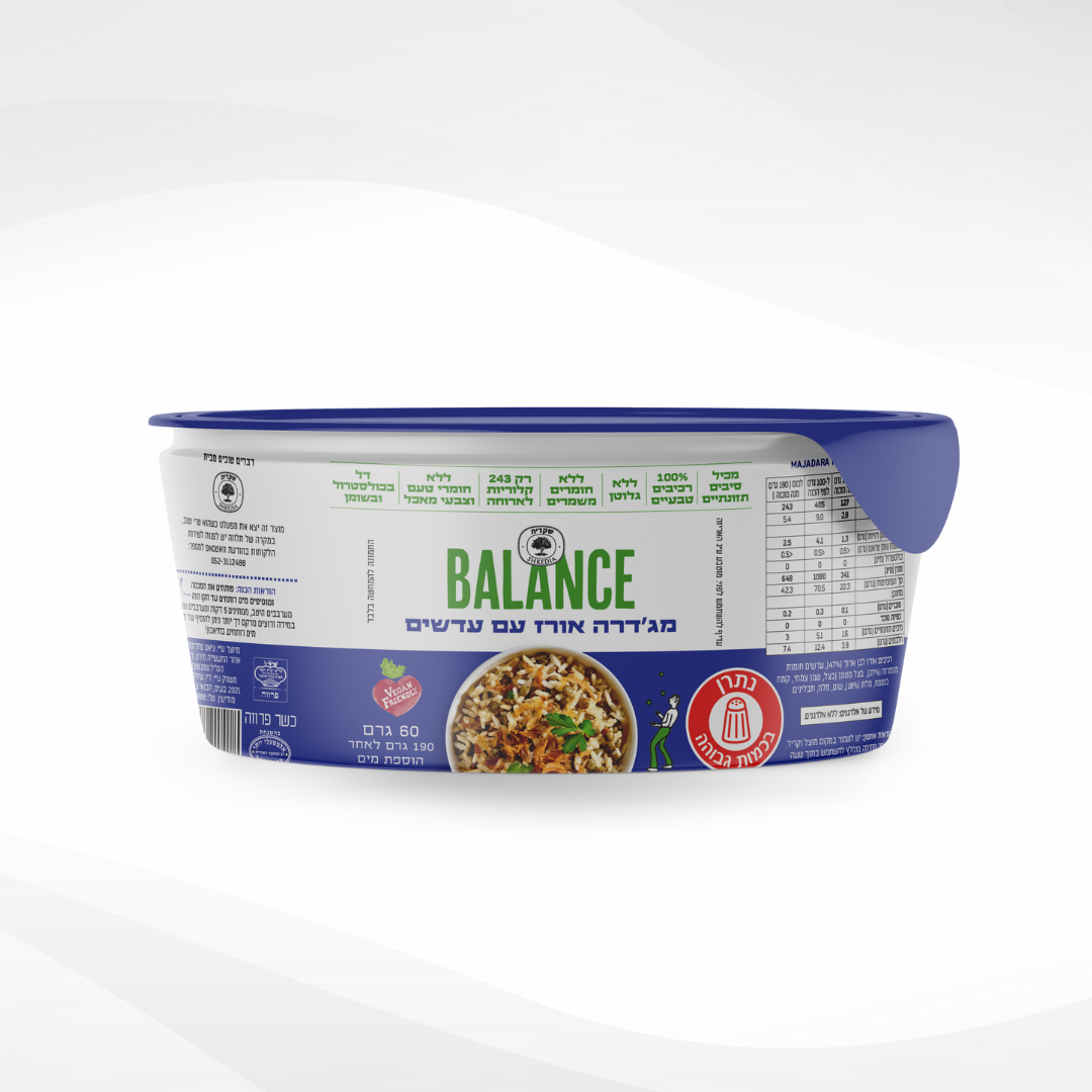 רכיבים: אורז לבן בסמטי (67%), אפונת גינה מיובשת בהקפאה (8%) בצל מטוגן (בצל, שמן צמחי, קמח כוסמת, מלח) (7%), שום, מלח, תבלינים